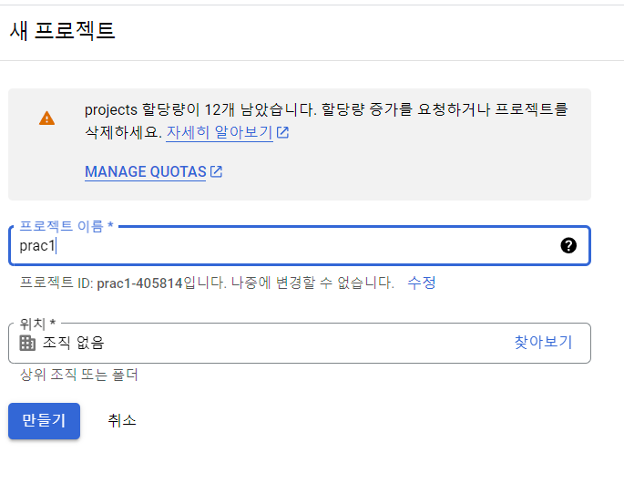 1. 여기로 들어가서 새 프로젝트를 생성한다.