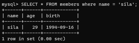 INSERT INTO members(name, age, birth) values(sila, 29, 19940916);