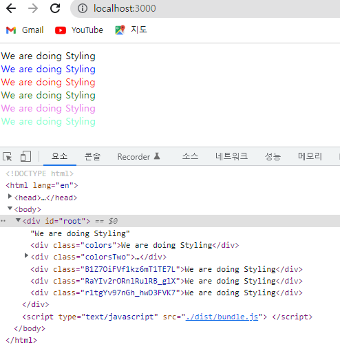브라우저에서 불러오면 각각 지정해준 색대로 글자가 렌더링되는 것을 볼 수 있다.