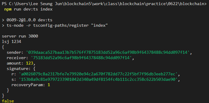 이 tx 데이터를 가지고 우선 서명이 유효한지 확인하고 결과를 출력해보자.