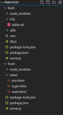 이제 게시판 관련된 기능들을 구현해보자. 게시판에 꼭 필요한 페이지는 글 리스트, 글 보기, 글 쓰기, 글 수정 페이지 4개 정도가 있는데, 각각의 라우터와 미들웨어를 작성해준다. 지난 번 user의 라우터를 분리한 것과 동일한 방법으로 작성해주면 된다. 1. 라우터, html 작성 /* front/routes/index.js */ const express = require('express') const router = express.Router() const userRouter = require('./user/index.js') const boardRouter = require('./board/index.js') // 추가 router.use('/user', userRouter) router.use('..